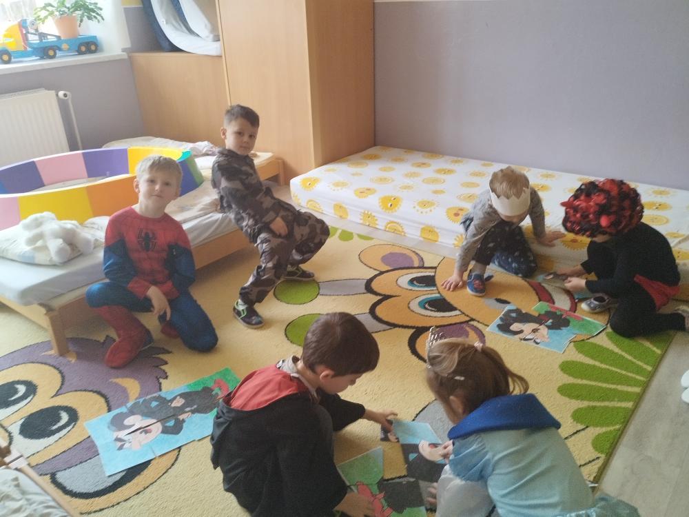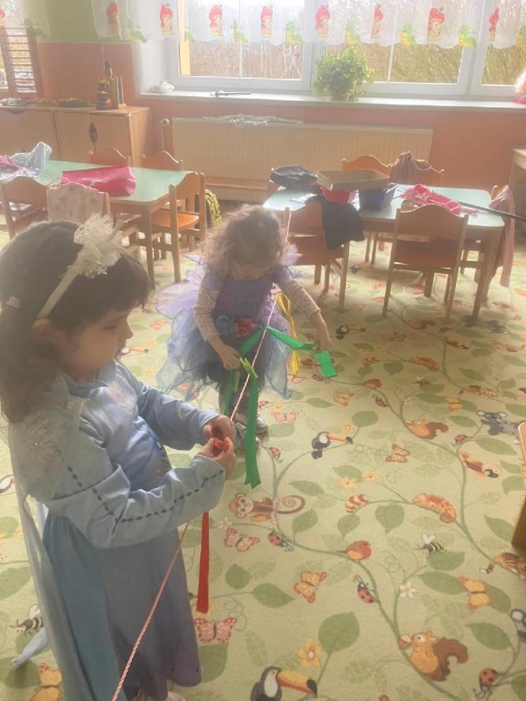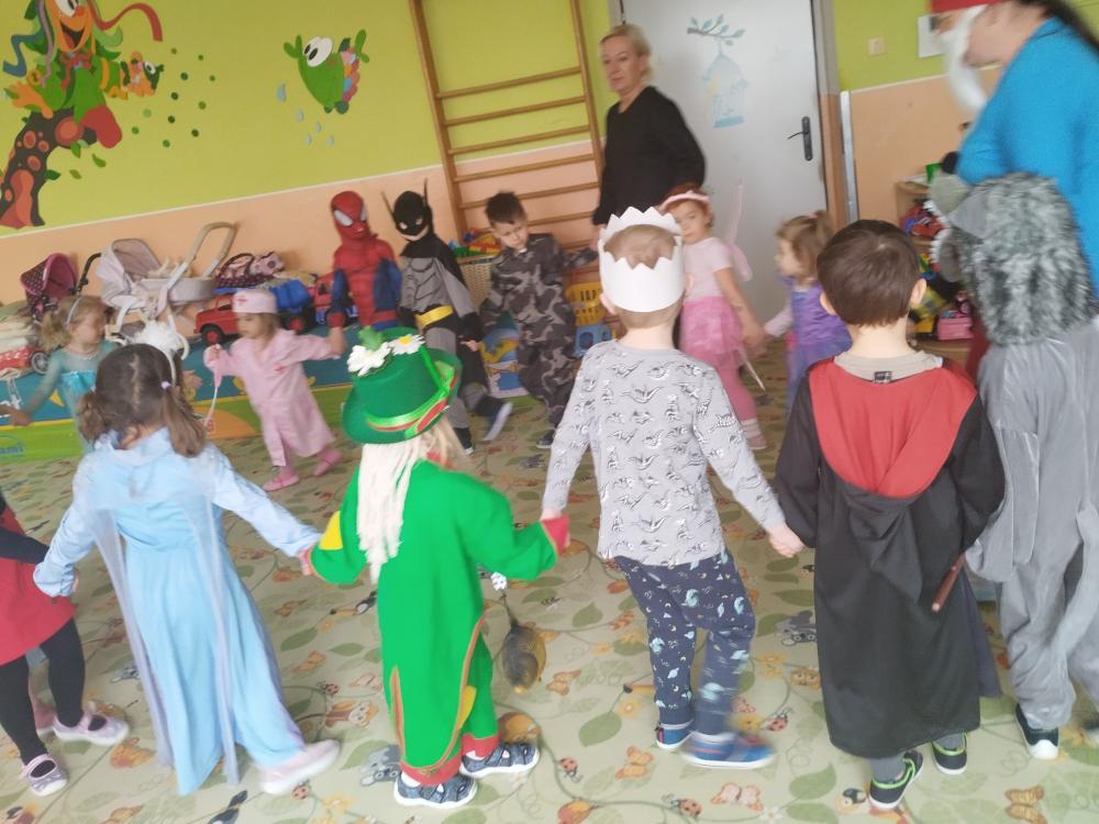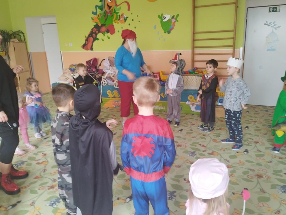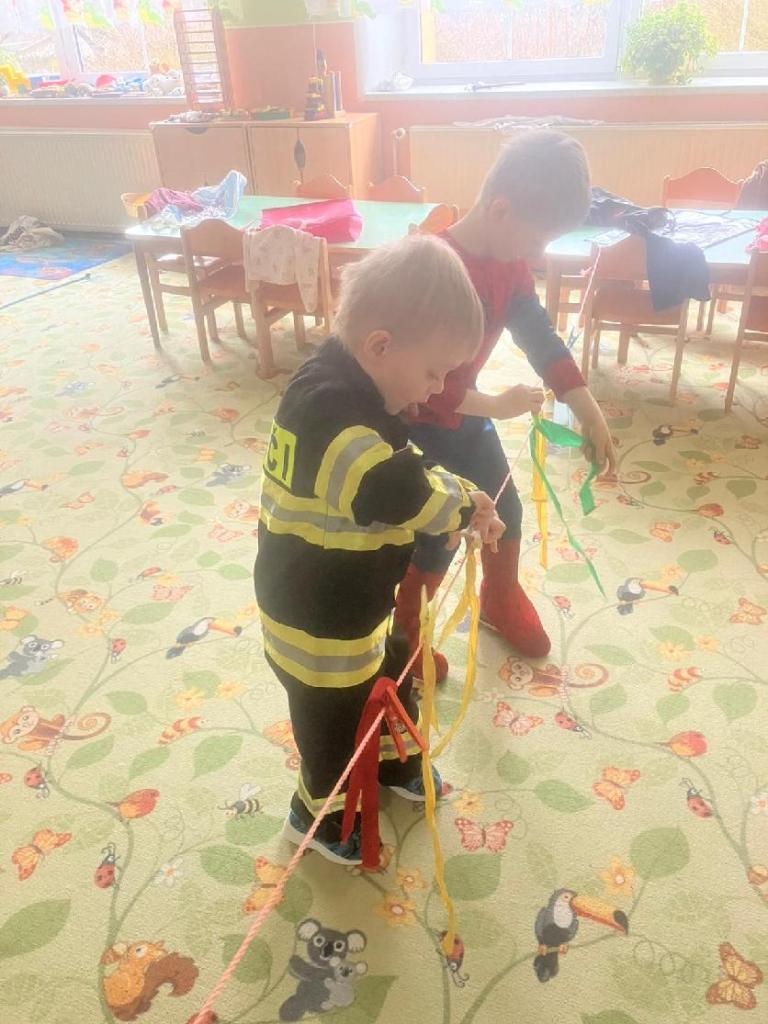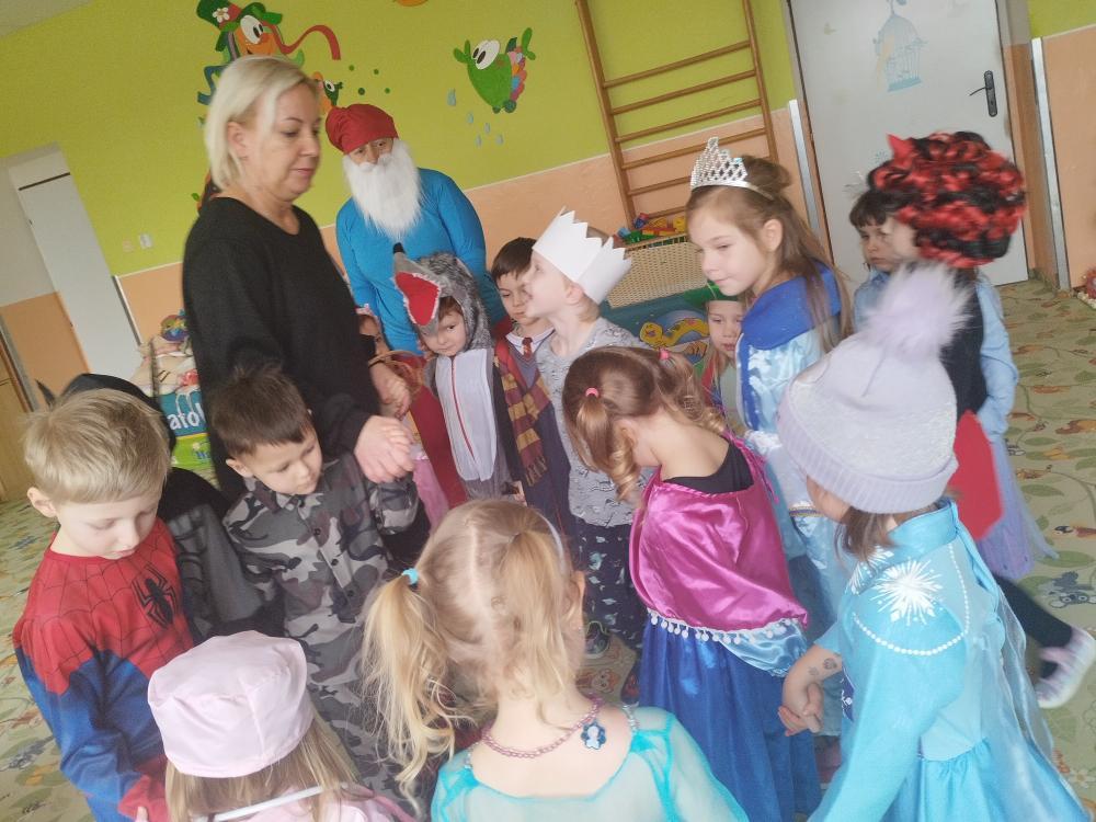 Ve středu 25.2. 2026 se děti vyřádily v rozmanitých karnevalových maskách (Elsa a Anna, princezna, víla, lékařka, čertice, vlk, voják, vodník, hasič, Spiderman, Batman, Harry Potter). Paní učitelky se tentokrát proměnily za hodného taťku Šmoulu a zlého Gargamela :)